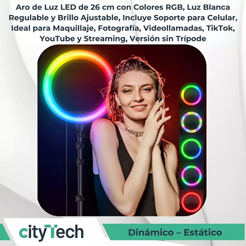 Aro de Luz LED RGB + Blanco 26 cm 🌈💡 – Iluminación Ideal para Selfies, Streaming y Más